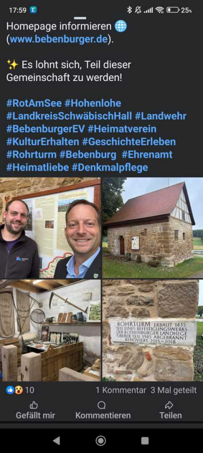Nachdem der Verein mit den Zuschüssen vom Landesdenkmalamt, der Denkmalstiftung Baden-Württemberg und der Gemeinde Rot am See sowie vielen privaten Spenden schon knapp die Hälfte der auf 130 000 Euro veranschlagten Sanierungskosten abdecken konnte, ist mit dem Leader-Bewilligungsbescheid nun ein weiterer großer Schritt zur Realisierung des Projektes genommen. Für Bürgermeister Siegfried Gröner war dabei im Vorfeld klar: „Wenn ein Projekt im Gemeindegebiet prädestiniert ist für diese Förderung, dann der Rohrturm.“ Deshalb habe er den „Bebenburgern“ die Antragstellung ans Herz gelegt. Schriftführer Dieter Hohenstein hat sich der damit verbundenen Papierflut angenommen, und den Antrag bei der Geschäftsstelle des Vereins „Leader Regionalentwicklung Hohenlohe-Tauber“ in Buchenbach eingereicht.